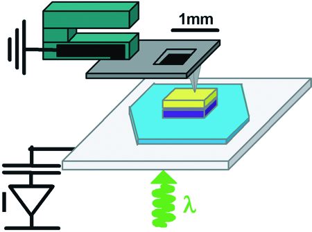 New implementation project Although nanoelectronics (organic transistors) and optoelectronics were originally the main objectives, new needs have emerged, for example for organic photovoltaics. A new project supported by the DSM-Energy program involves model planar junctions. The project benefits from the laboratory know-how in synthesis of thin-film organic single crystals (hole conducting materials). The QPlus nanostencil is used for the deposition of C60 (electron conductor) and of the cathode, and for the measurement of both cell performance under illumination and intrinsic properties (mobility) of the components (Figure 4.) We thus have a flexible way of fabricating and studying multiple samples without using lithography at any step.